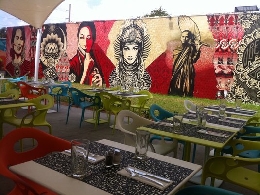 Os murais que aparecem no background destas fotos são do restaurante Wynwood Kitchen and Bar que contratou alguns dos melhores grafiteiros dos Estados Unidos pra criar os paineis dentro do restaurante.Vale a pena passar por lá, nem que seja pra experimentar os drinques, que levam os nomes dos artistas que trabalharam no projeto como o Shepard Fairy e o Kenny Scharf.