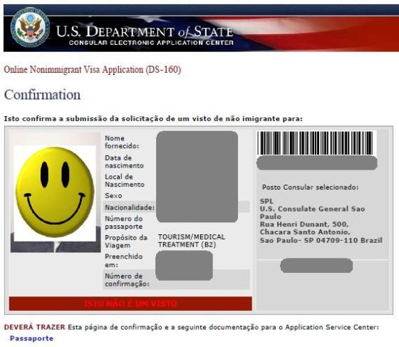 O processo começa no Site Oficial de Informações de Visto para os Estados Unidos, onde se faz um cadastro com o número do passaporte e a data de nascimento. As instruções são exibidas na tela, num passo a passo fácil de entender. A taxa, de US$ 160, pode ser paga pelo cartão de crédito ou pelo boleto. Mas atenção: o site avisa que nenhum pagamento será ressarcido, mas o sistema de boleto é confuso e gera um boleto novo a cada tentativa de acesso. O boleto pago tem um número de confirmação, que deve ser inserido junto de cada nome para liberar o agendamento da entrevista. Minha dica é imprimir ou salvar em PDF o boleto mesmo que for fazer o pagamento via internet. A parte mais chata ainda é o preenchimento do formulário DS-160, que continua com as perguntas ridículas de segurança, do tipo “pretende cometer um atentado terrorista” e “esteve envolvido no tráfico de órgãos humanos”.
