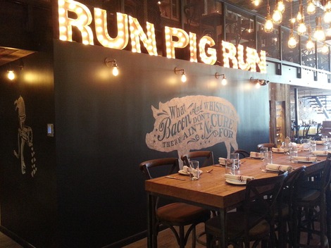 O Swine, que fica quase em frente do Bulla na avenida Ponce de Leon, é dos mesmos donos do Yardbird (post aqui), e segue a mesma linha, servindo comida e drinques inspirados pela culinária tradicional do sul dos Estados Unidos. O ambiente é moderninho mas sem ser pretensioso, e os pratos são preparados com ingredientes autênticos provenientes de fazendas da Georgia e do centro da Flórida. Embora o menu tenha um pouquinho de tudo, a maioria dos pratos revolvem em torno de carnes: no dia em que jantei lá, o destaque ficou para o peito bovino defumado (smoked brisket) preparado no estilo do Texas, e para a costelinha de porco com molho de barbecue à moda de Memphis.