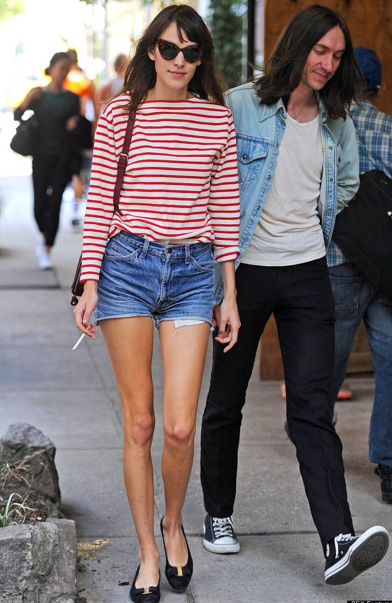 Eu tenho um shorts jeans que já virou o mundo comigo e que eu sempre uso com camiseta durante o dia ou com blazer à noite. Mas recentemente eu vi a Alexa Chung em uma série de fotos usando o mesmo tipo de short e fiquei inspiradíssima. Que tal experimentar usar o seu com legging agora no outono brasileiro? Ou com a t-shirt listrada na primavera quente de Miami?
